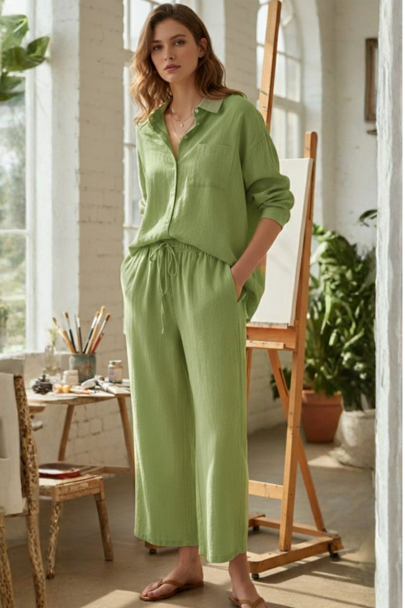 Since 2008, our small studio in the Hudson Valley has been filled with fabric rolls, sketch papers, and women who believe clothes should be made for women by women. Every stitch, every cut, every detail — it all starts right here, in the same rooms where we welcome you. All with love.
